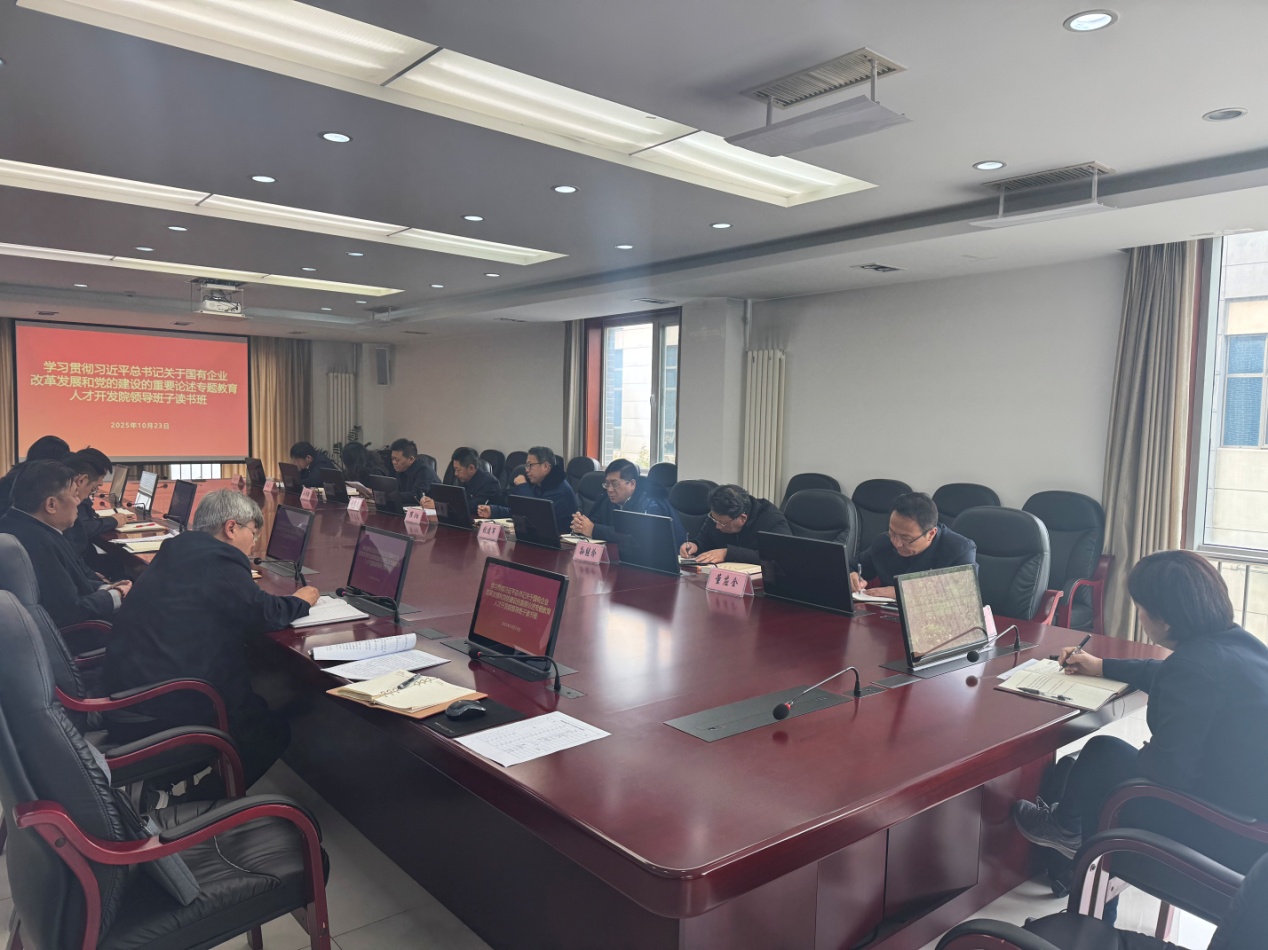 根据北京市委组织部、市国资委党委部署,按照人才开发院党委安排,10月23日,学习贯彻习近平总书记关于国有企业改革发展和党的建设的重要论述专题教育人才开发院领导班子读书班开班。人才开发院领导班子认真学习党的二十届四中全会精神、原原本本学习习近平总书记关于国有企业改革发展和党的建设的重要论述,不断把上级部署要求转化为推动人才开发院高质量发展的实际行动。人才开发院党委书记石淳光主持,院领导班子成员参加。